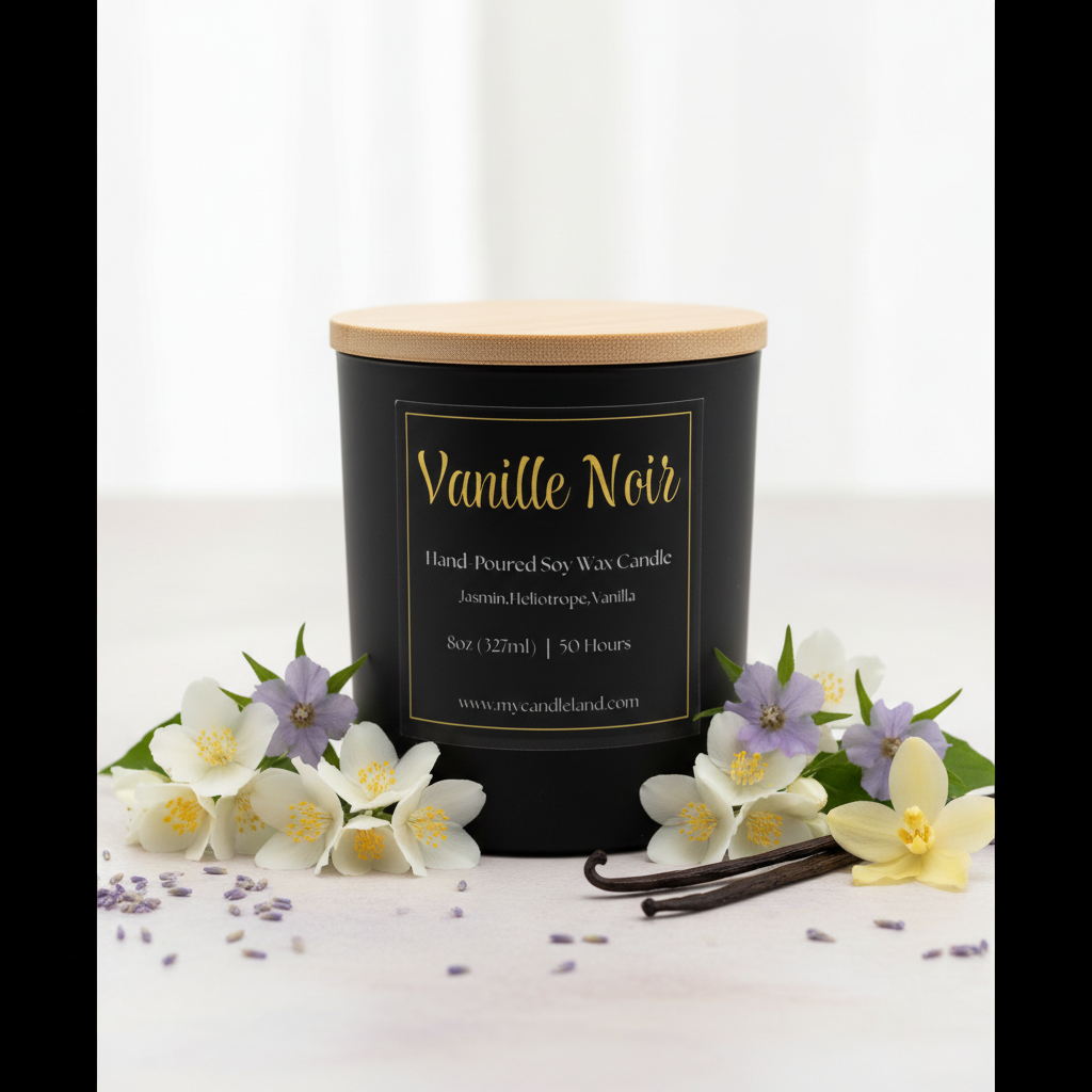 Step into a world of subtle elegance with our Vanille Noir candle. Sensual jasmine and powdery heliotrope mingle with rich, creamy vanilla to create an enchanting fragrance that’s both mysterious and comforting.